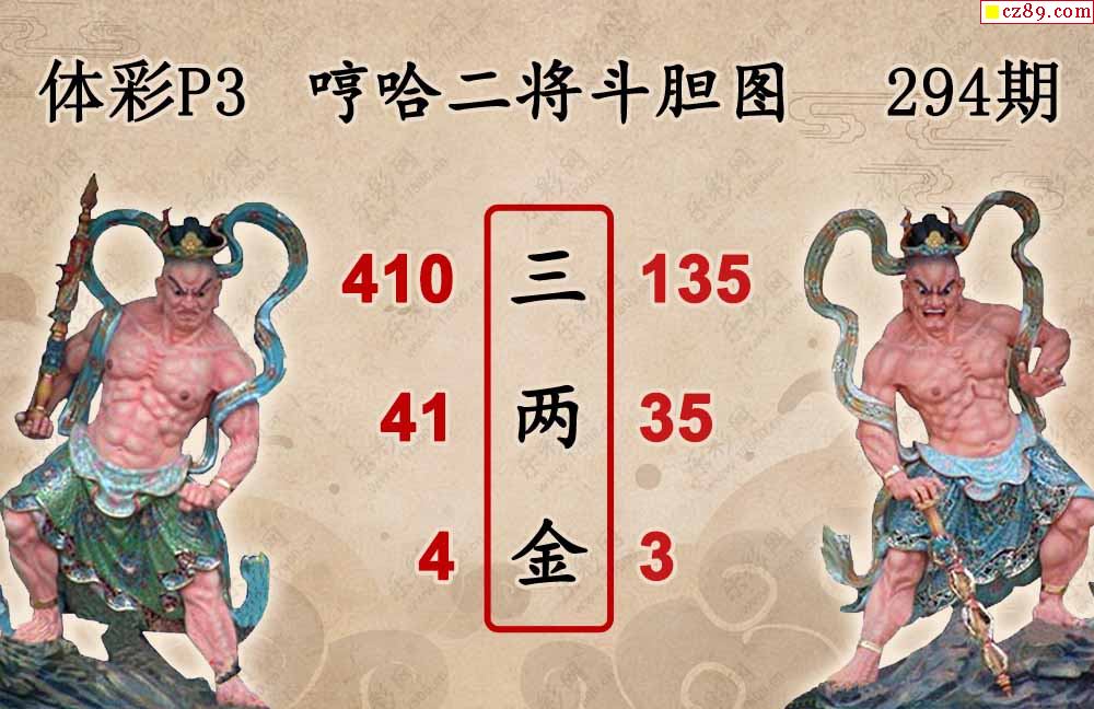 > 2025294期排列三 白鱼舟P3图谜哼哈二将斗胆图