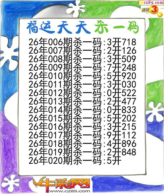 福运天天杀一码020期体彩P3图谜