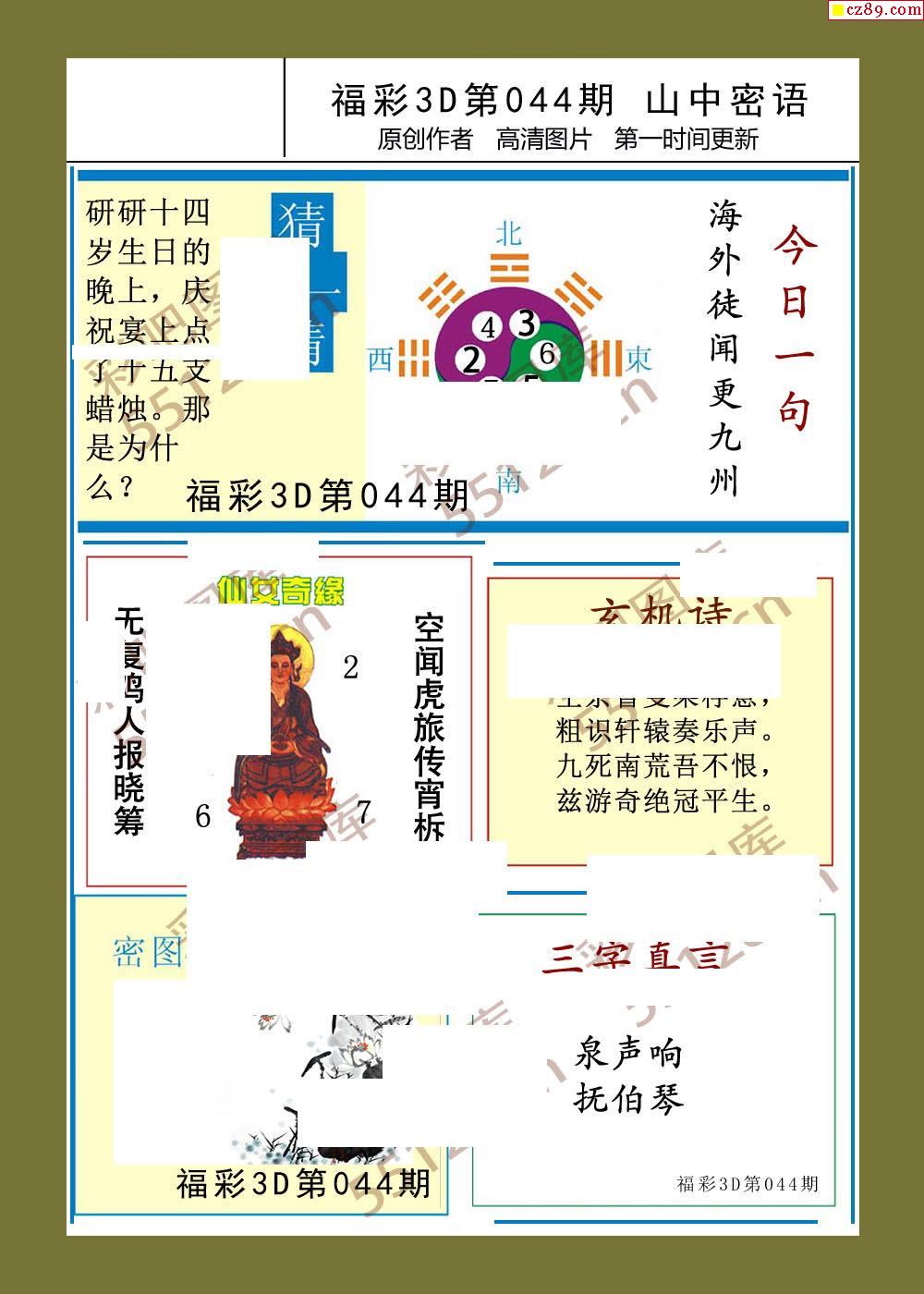 福彩3d26年044期山中密语彩报