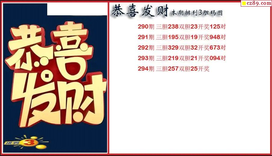 > 2025294期P3恭喜发财胆码图