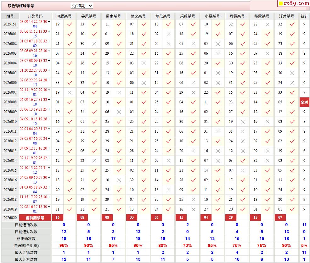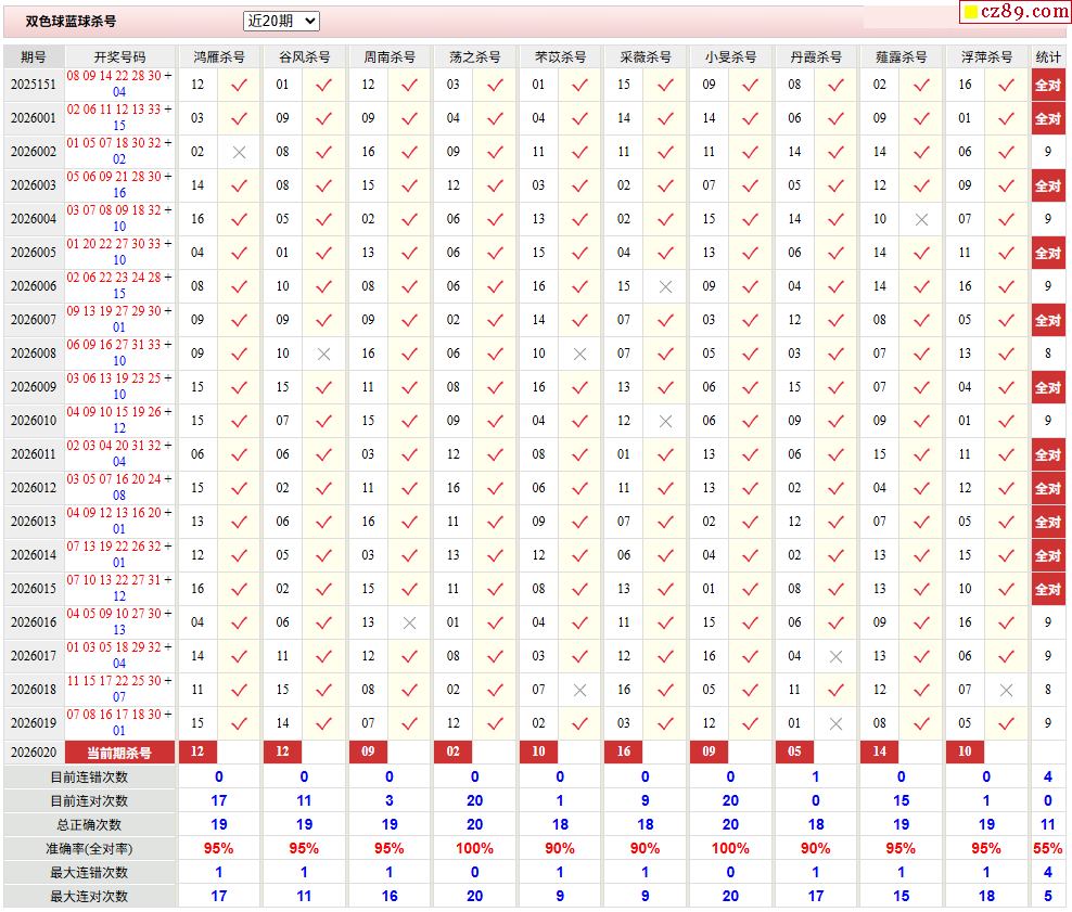 > 020期彩票专家双色球杀红蓝推荐汇总